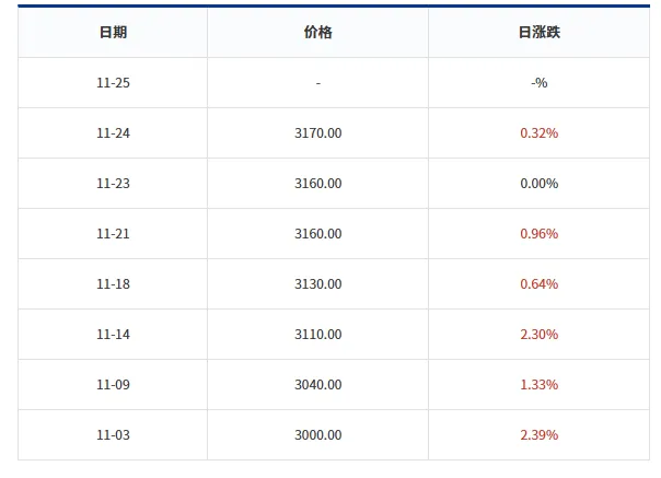Pro 140g/m² charta limata, pretium ascenderunt 12.09% inter Octobre 16 et 16 Novembris 2025. Super fenestra longiore (August 27 ad 25 Novembris), lucra cumulativa feriunt 20.99%. Novissimum pretium die 24 mensis Novembris anno 3170 RMB per ton pervenit, cum parvis servandis sursum continuatis.