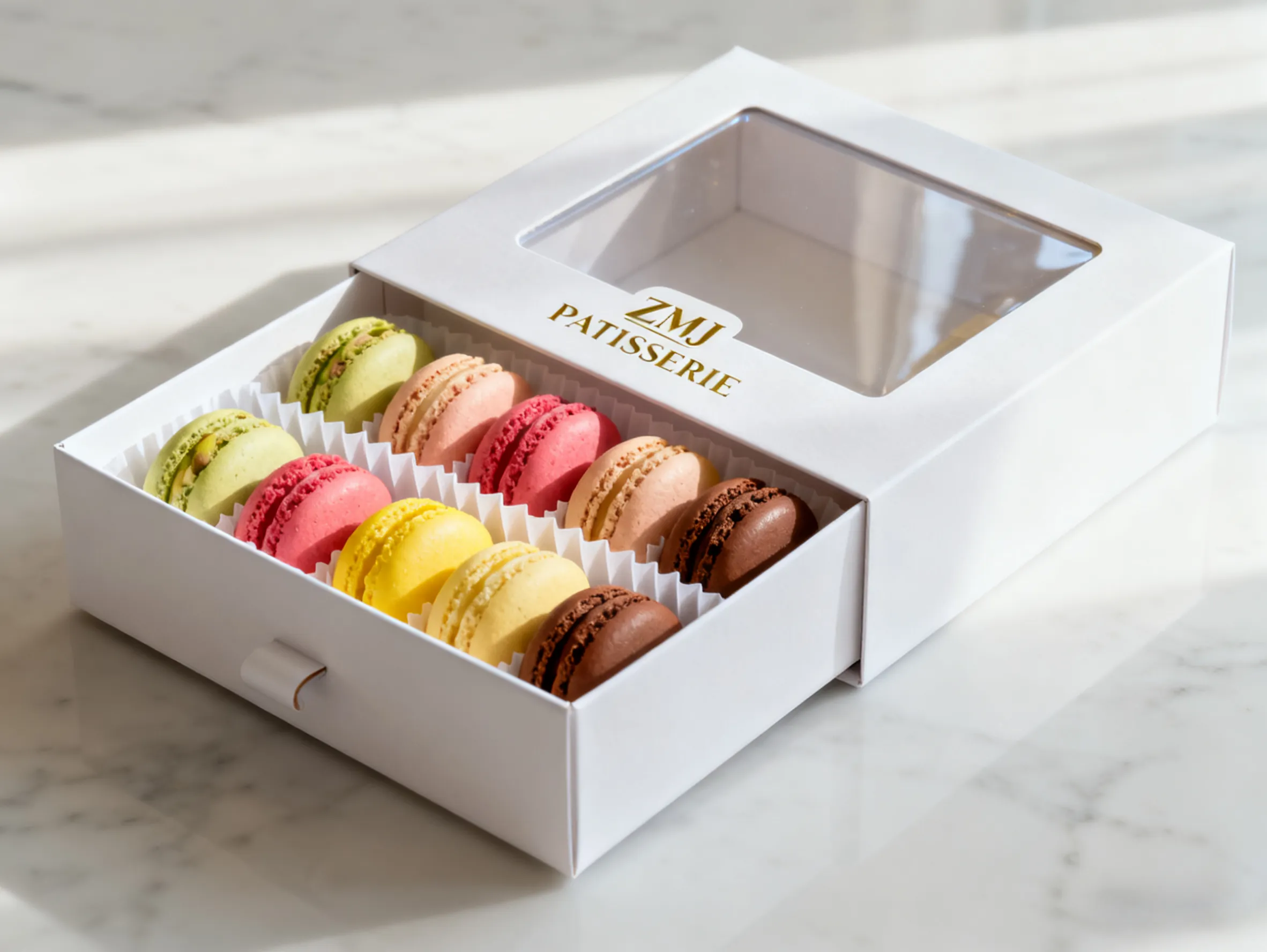 Macarons novimus omnes delicatos, lucidos, et luxuriosos. Haec igitur packaging qualitates considerare debent. Qingdao Zemeijia facit GENEROSUS mos macaron donum summus adipiscing. Hae pyxides macarontes tutantur et colores suos splendidos ostentant. Nostri pixides macarons in statu perfecto custodiunt in via ad te.